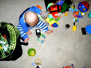 I'm feeling a little like a "distant" mom the past few days, with trying to get everything ready for this trip, but it was something that I'm sure I will make up for! Hudson is not the type of little guy who can just sit and be content for a long period of time. This boy is a busy bee [just like his parents] which makes getting ready for a big trip a little difficult! So, I had to figure some things out that would keep him occupied for longer periods of time, without feeling bad that I wasn't on the floor playing with him!